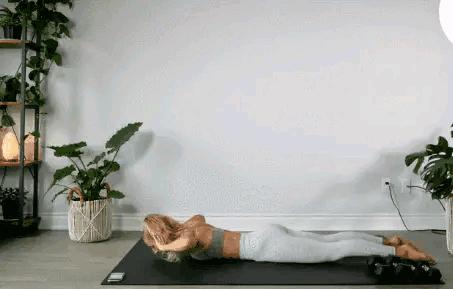 - 俯臥在墊子上,雙腿伸直,雙手支撐於胸側的位置。