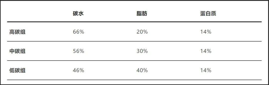 研究發現,3組人進行實驗,每天的熱量攝入相同,蛋白質攝入相同,但是碳水主食攝入量不同,三組人分別進行高中低碳水攝入。