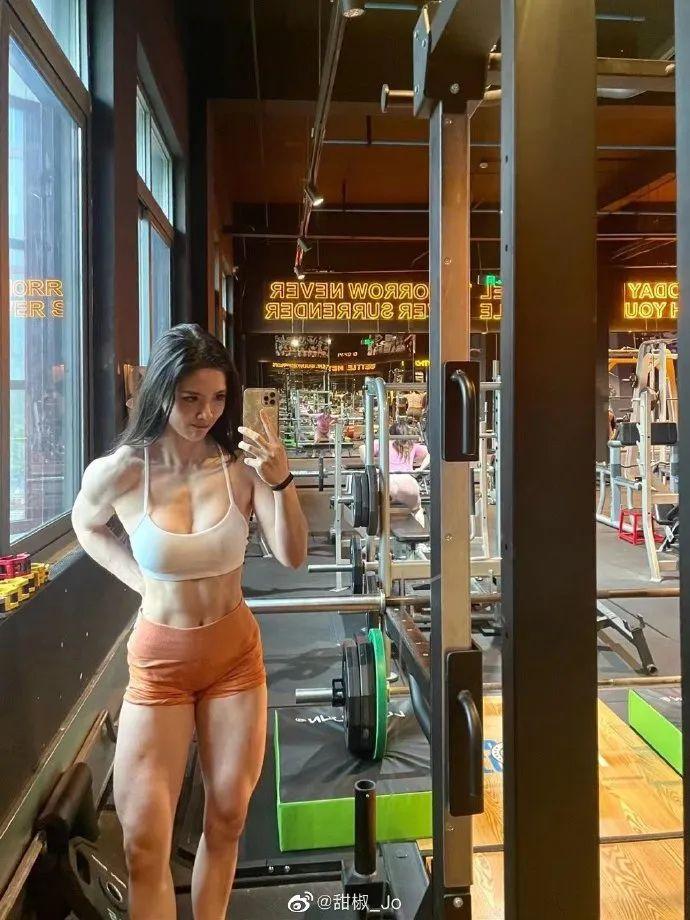 肉眼可見的低體脂,猶如白巧一樣的緊實肌肉,配上頗高的顏值,這位姐能火不是沒原因的!
