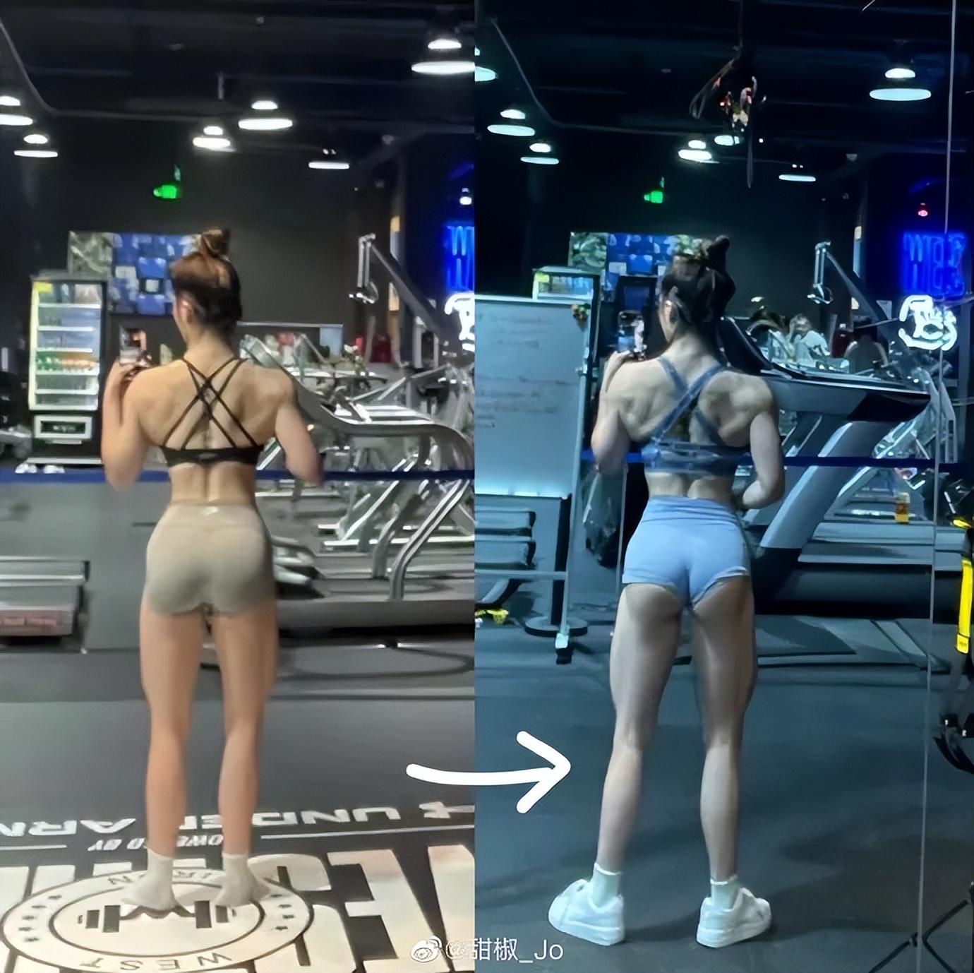 她會經常曬出自己的健身對比照,記錄身材一步一步的變化。