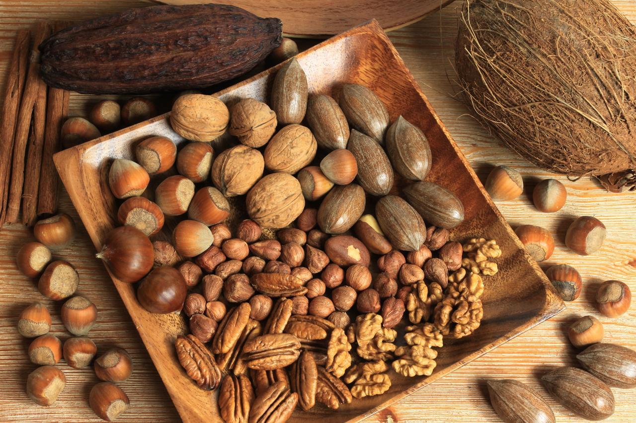 各種核桃、杏仁、腰果、開心果、巴西堅果,富含不飽和脂肪酸跟維生素E,有益心臟健康,還能起到抗氧化效果。