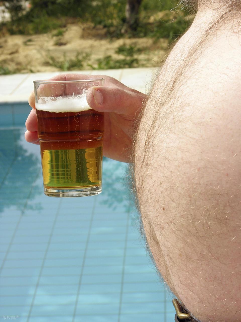 愛喝酒的人更容易出現啤酒肚,酒精中的熱量非常高,肝臟會優先代謝酒精,導致其他食物中的脂肪無法被及時分解,轉而堆積在腹部。