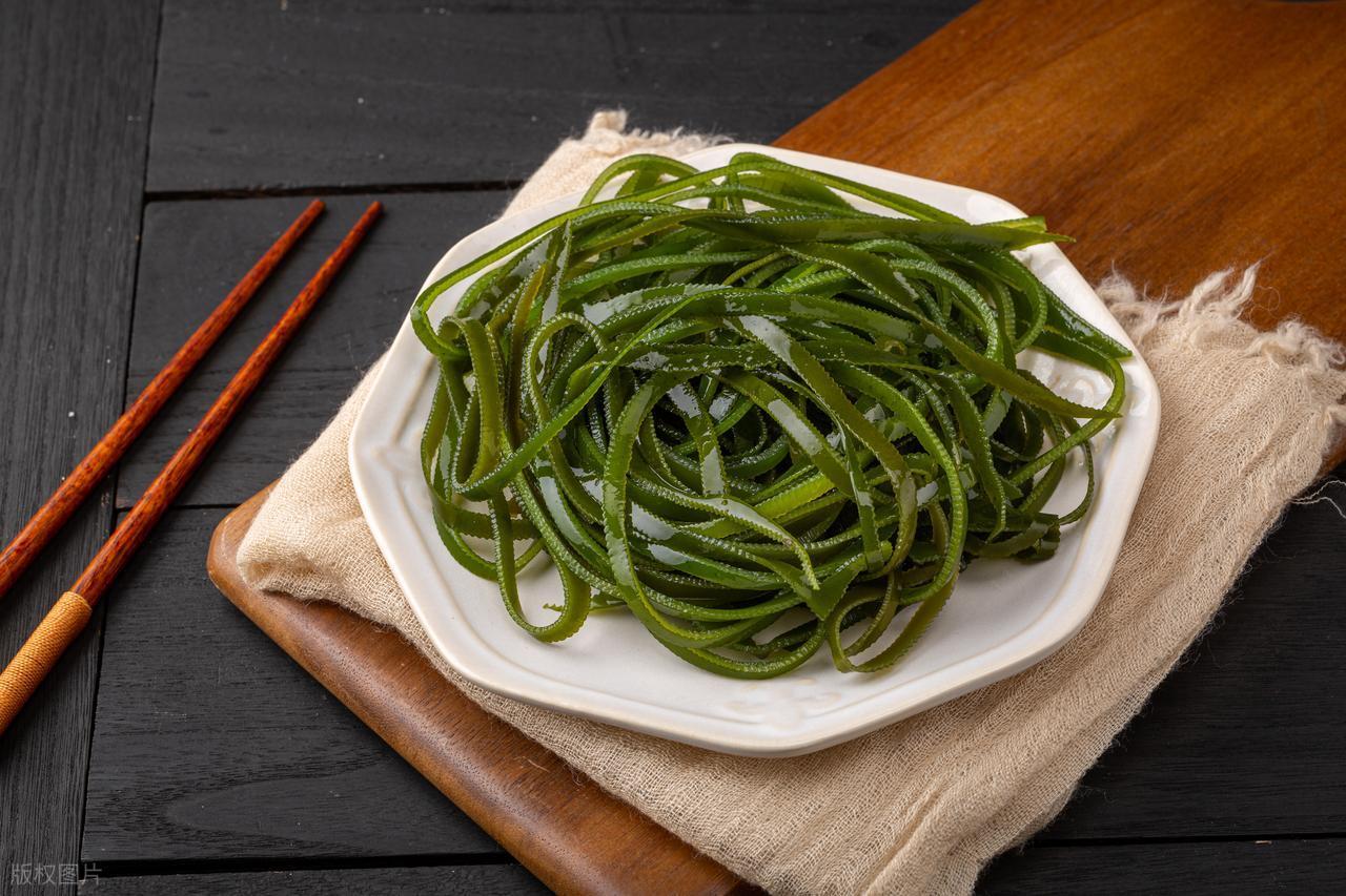 海帶熱量極低,100g海帶的熱量約13大卡,富含碘元素,能促進甲狀腺素的合成,提高身體的新陳代謝。海帶中的多糖類物質具有降低血脂的功效,有助於預防心血管疾病。