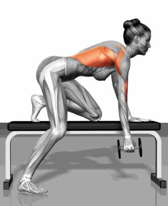 動作要點:可採用俯身啞鈴划船(膝蓋微屈,上身前傾)或坐姿划船。發力時手肘貼近身體向後拉,感受背部夾緊,緩慢下放。注意,不要藉助身體擺動來拉起啞鈴,要靠背部發力。動作進行4組,每組12-15次。