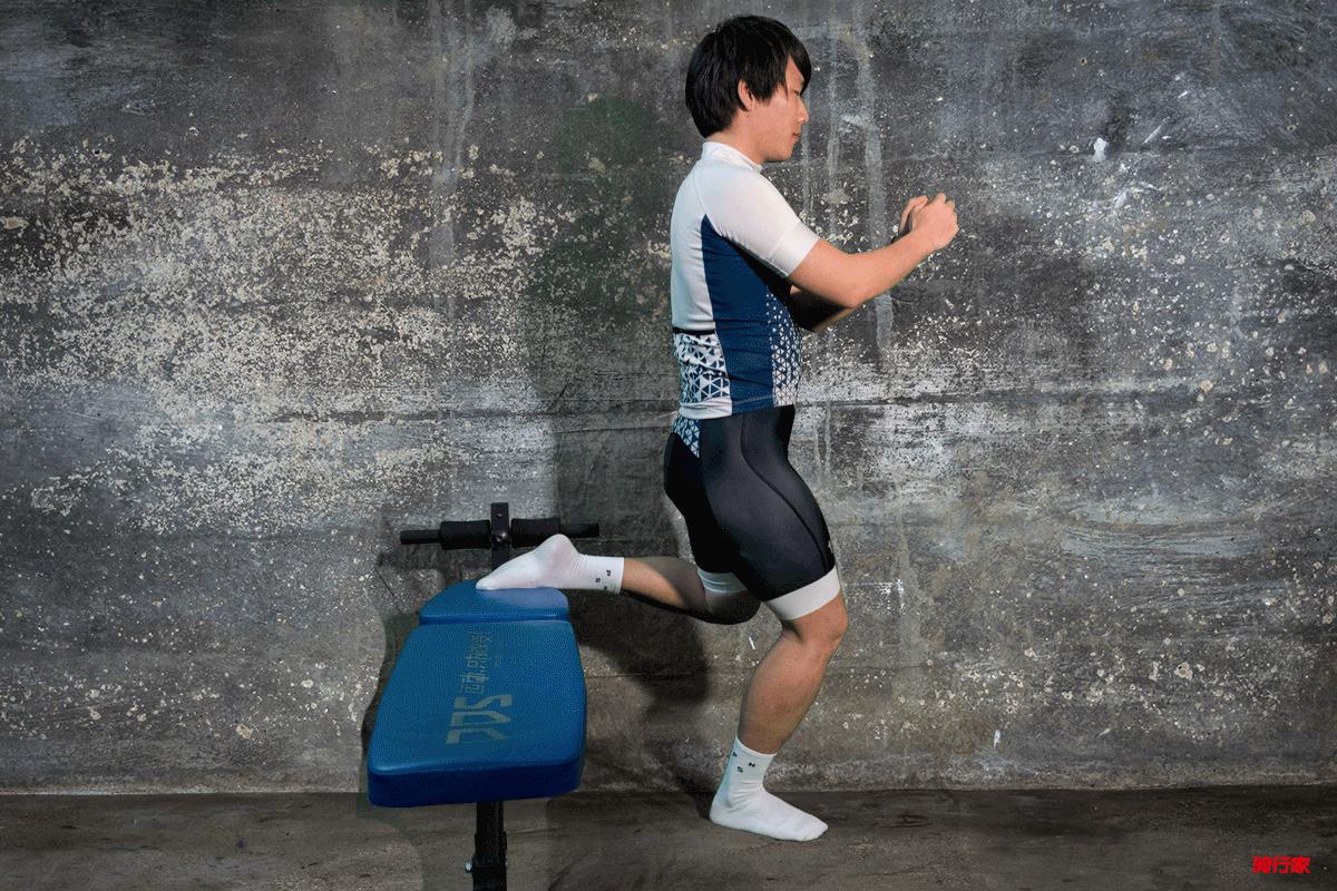 動作2、保加利亞蹲(練腿臀+平衡)