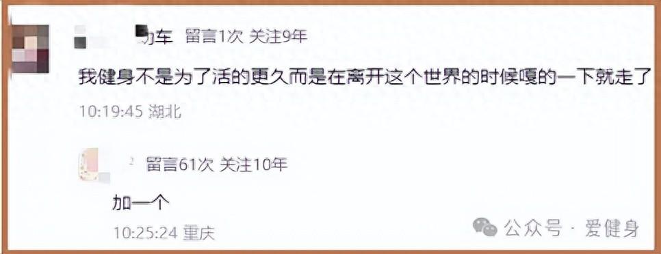 有粉絲留言說:我健身不是爲了活的更久,而是在離開這個世界的時候嘎的一下就走了。