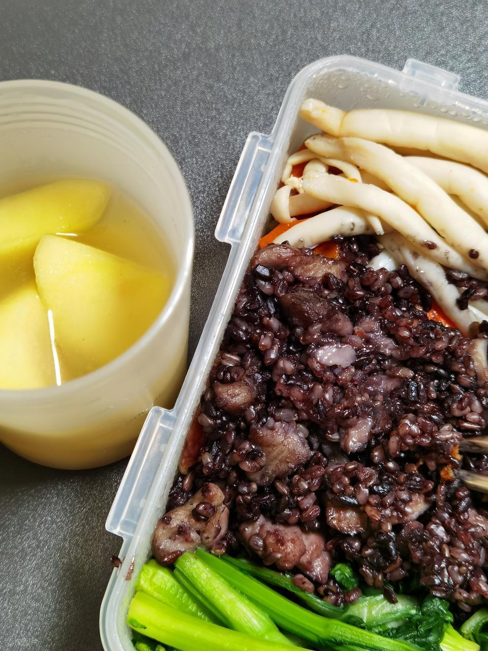 其次,他會自己帶飯上班