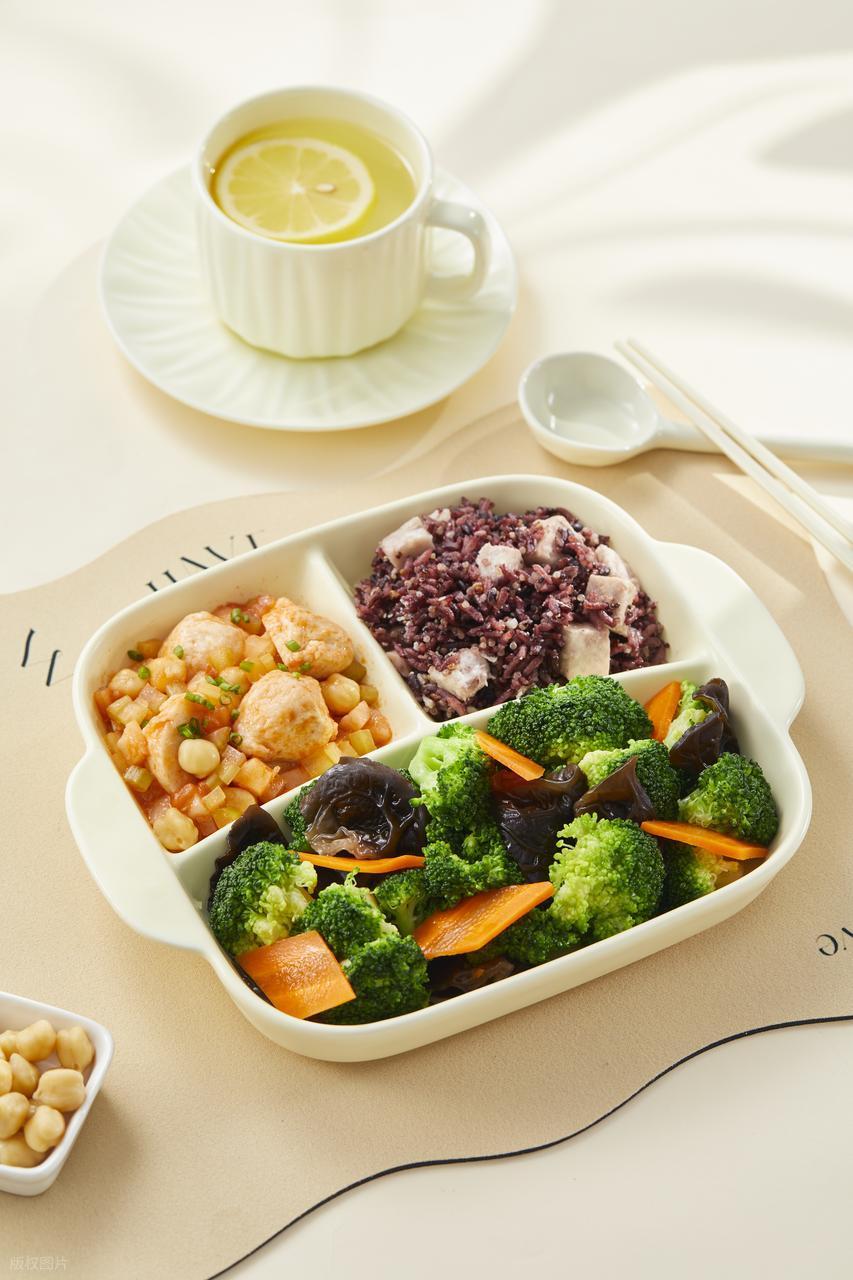 建議:晚餐清淡少油,以蔬菜+少量蛋白質(如魚、豆腐、瘦肉)+少量主食爲主,喫到七分飽即可。
