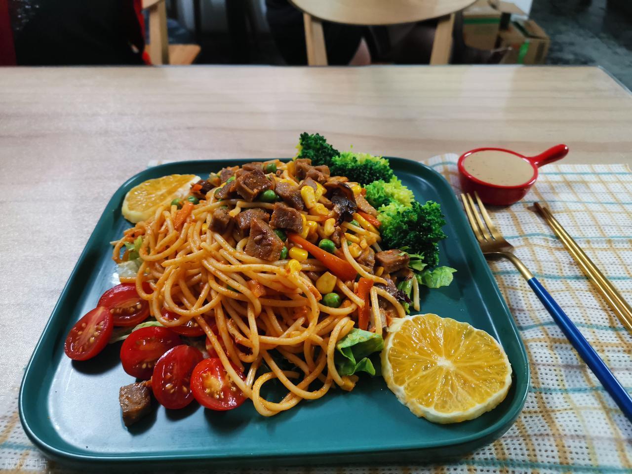 - 2 份蔬菜 (佔餐盤 ½)種類:優先選擇菠菜、西蘭花、黃瓜、菌菇等少油烹飪的非澱粉類蔬菜。分量:約兩個拳頭大小。