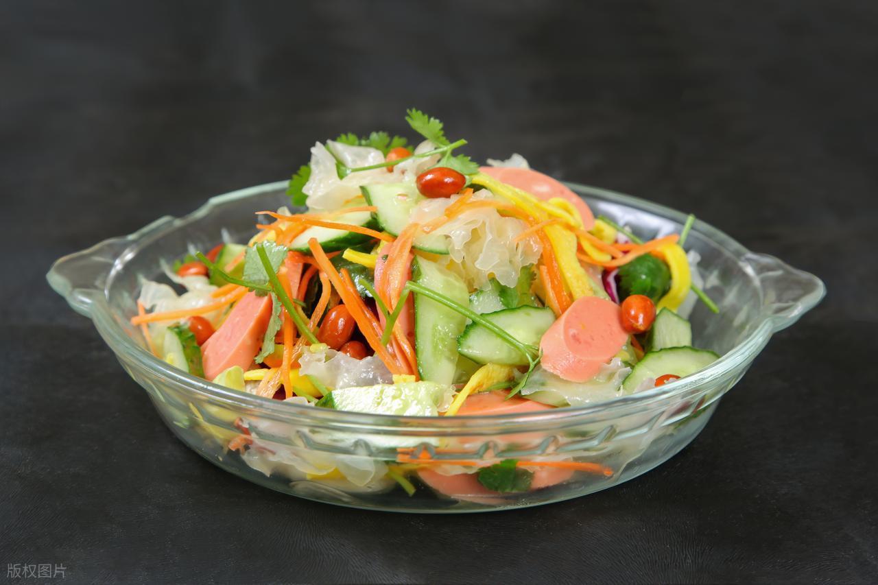 各種涼拌菜,比如涼拌黃瓜、涼拌時蔬等,熱量極低,體積大,能快速填滿胃部,提供強烈的飽腹感。各種蔬菜富含膳食纖維和維生素,能促進腸道蠕動,讓垃圾快速排出。