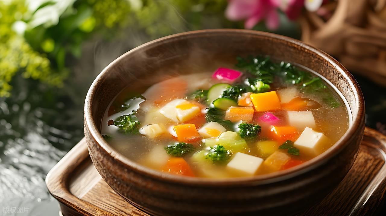 各種冬瓜蝦仁湯、番茄菌菇湯,食材豐富,營養全面,還含有大量的水分可以增加飽腹感,有效控制食量。