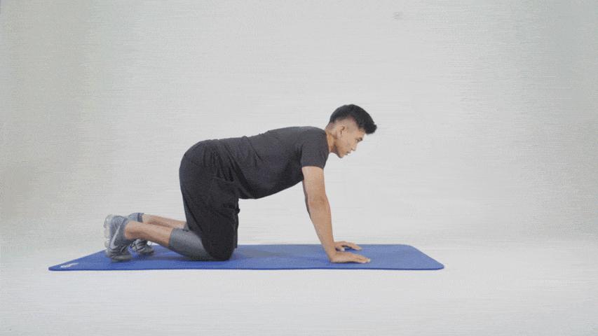 - 四足跪姿:雙手與肩同寬撐地,雙膝與髖同寬,腳背貼地。