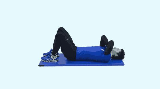 - 仰臥,雙膝彎曲,雙腳與肩同寬平放地面。