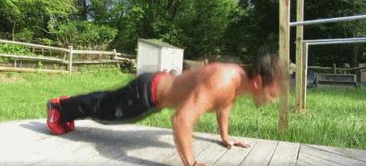 先不說危不危險,反正用反坦克地雷做俯臥撐,相當於用俯臥撐架。這樣可以給胸肌更多刺激,因爲給身體增加了一定的下沉空間。
