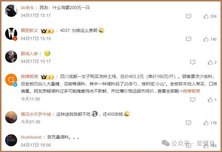 有不少網友看完後表示,四百多元一隻雞太貴了。還有網友表示,這種往死里加料的雞,送給他喫都不會喫。