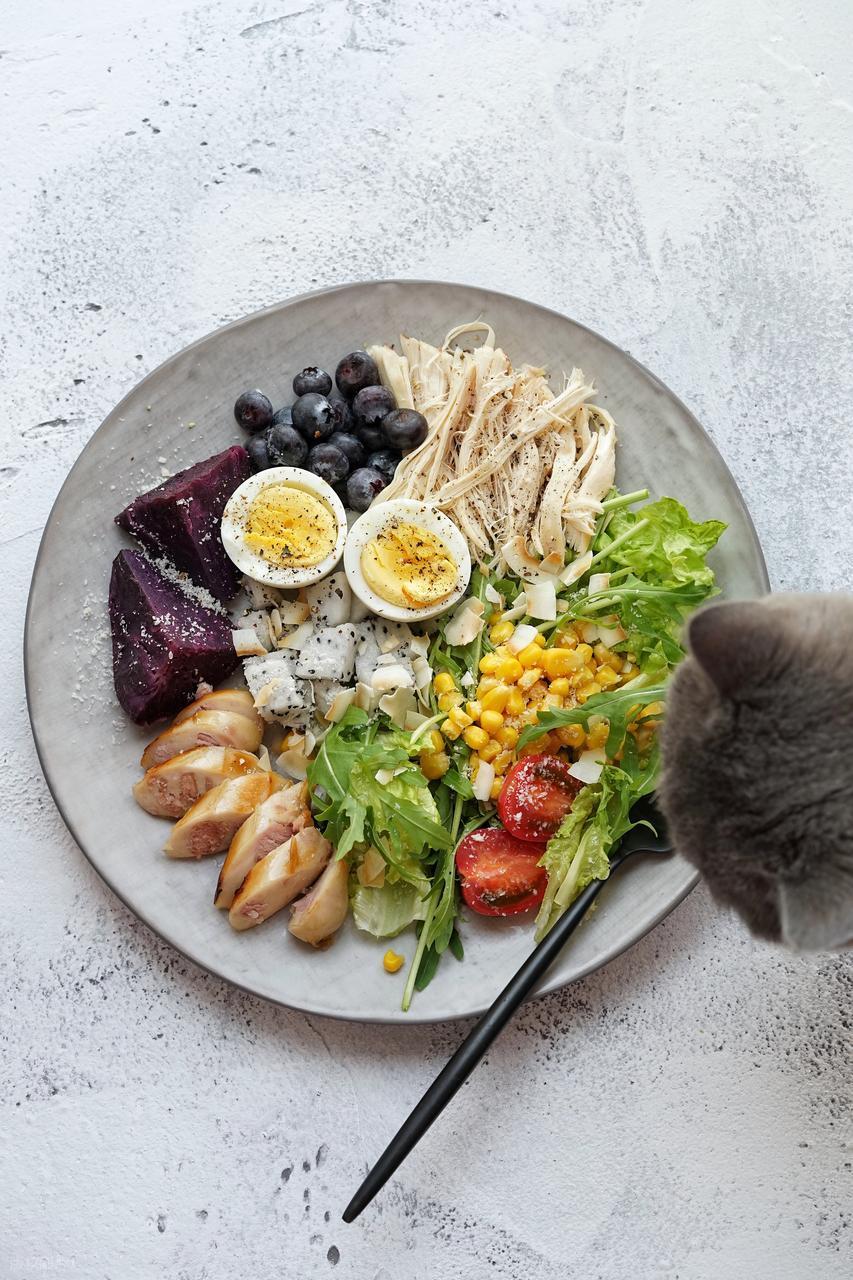 喫飯的時候,你可以準備一個盤子,將每餐食物按比例裝盤:其中蔬菜佔盤子一半,以深色綠葉菜、十字花科蔬菜爲主,而優質蛋白(如雞胸肉、魚蝦、雞蛋、豆腐等)佔盤子1/4,主食佔盤子1/4,優先選擇糙米、燕麥、紅薯等全穀物。