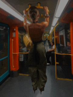 有網友分享了一位在地鐵上大露背拉引體向上的女生,只見她雙手抓住車廂頂部的圓形把手,引體向上輕鬆完成。