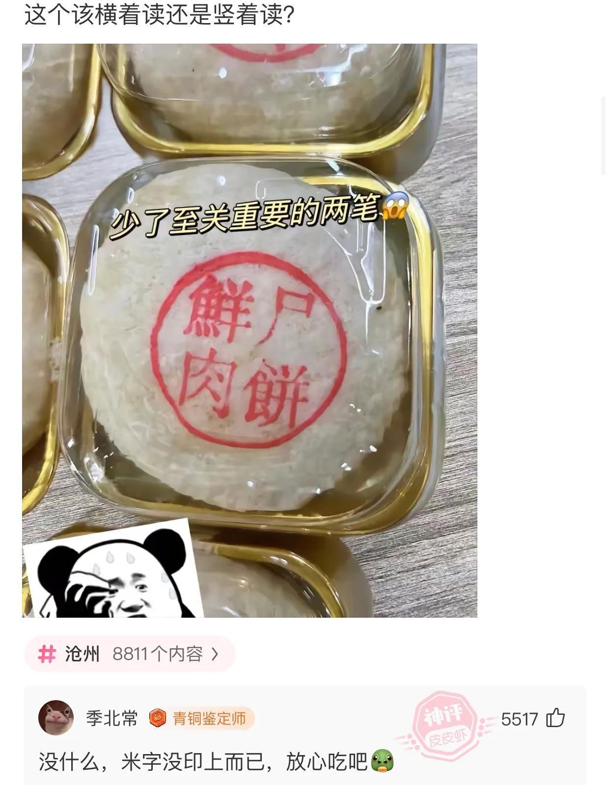 那個少印的字是月,鮮月肉餅