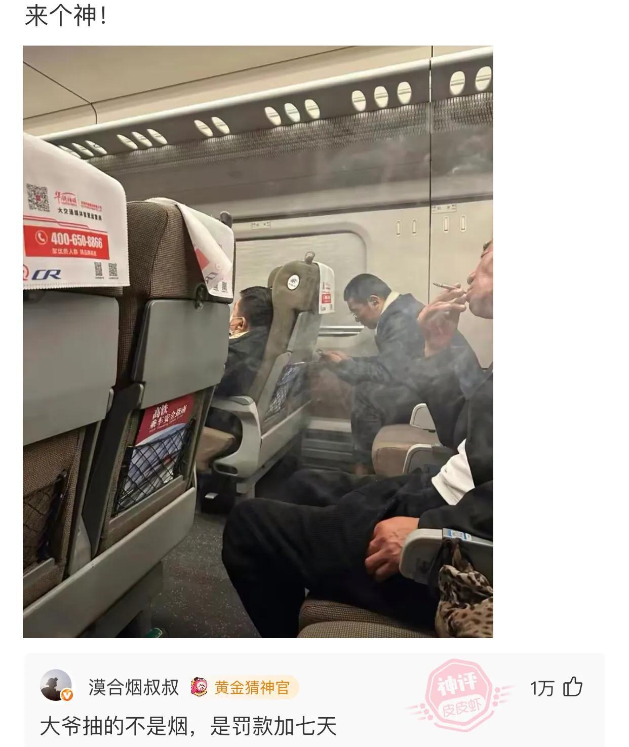 高鐵裏面一根菸,罰款兩千拘七天