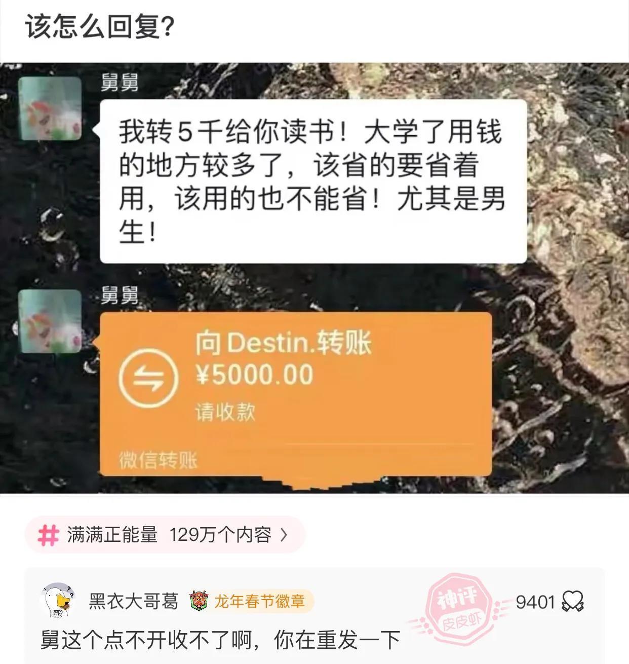 謝謝舅舅,錢我就領了,心意你就收回去吧。