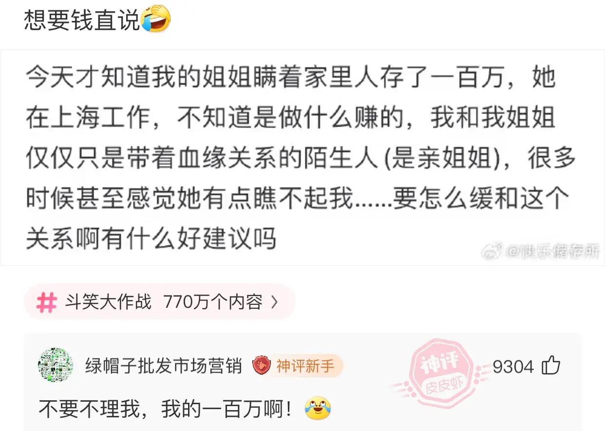 高情商:我愛姐姐。低情商:我愛姐姐的錢