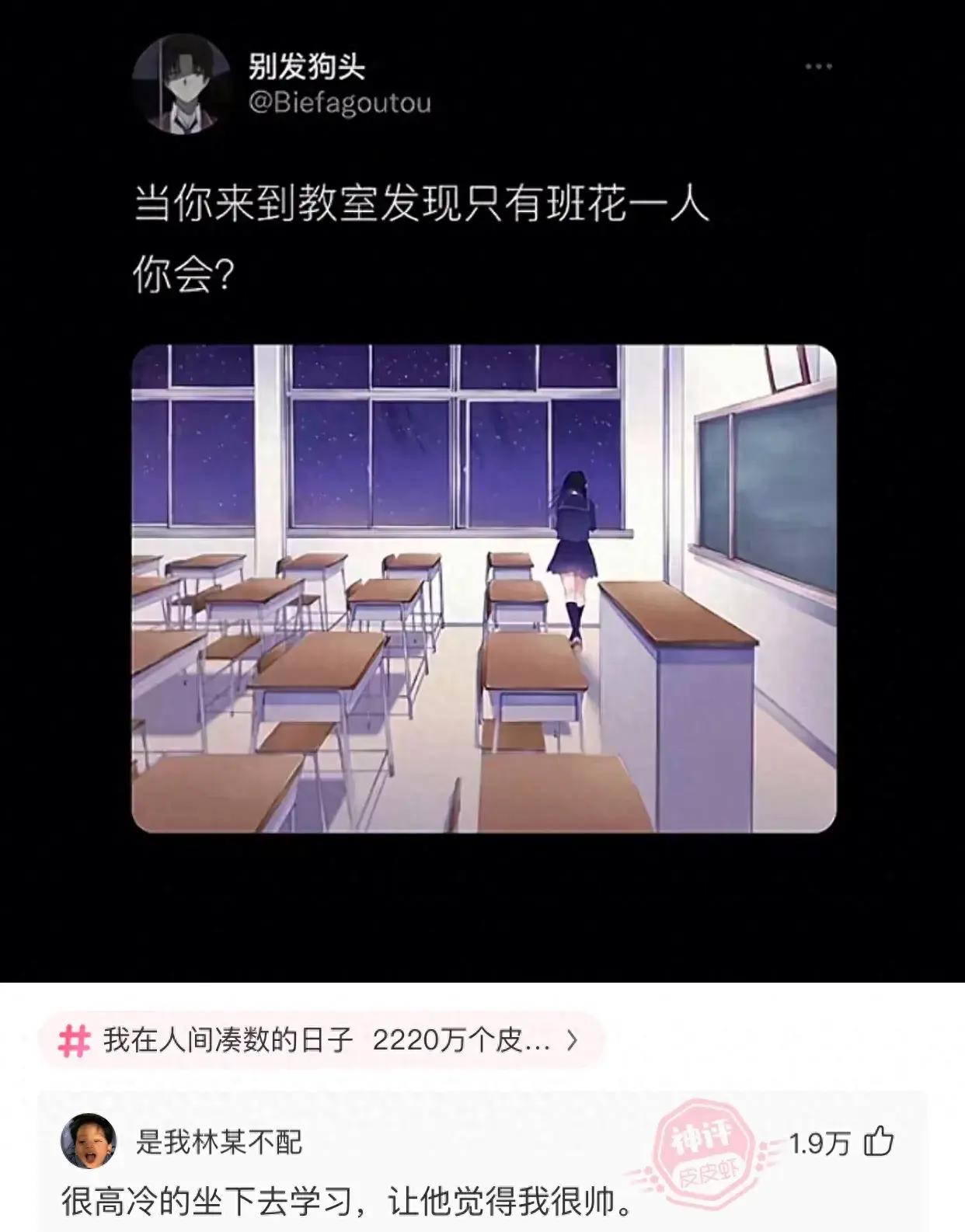 爆笑神評:當你來到教室發現只有校花一個你會?