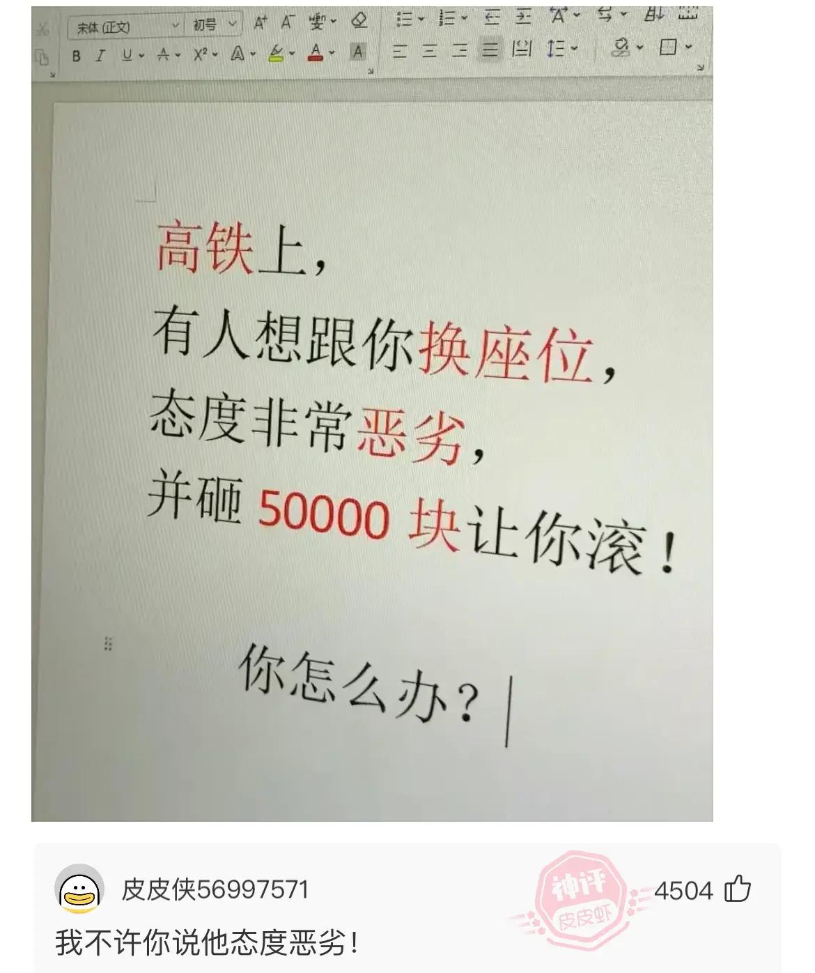 爆笑神評:我不可能爲了尊嚴錢都不要了
