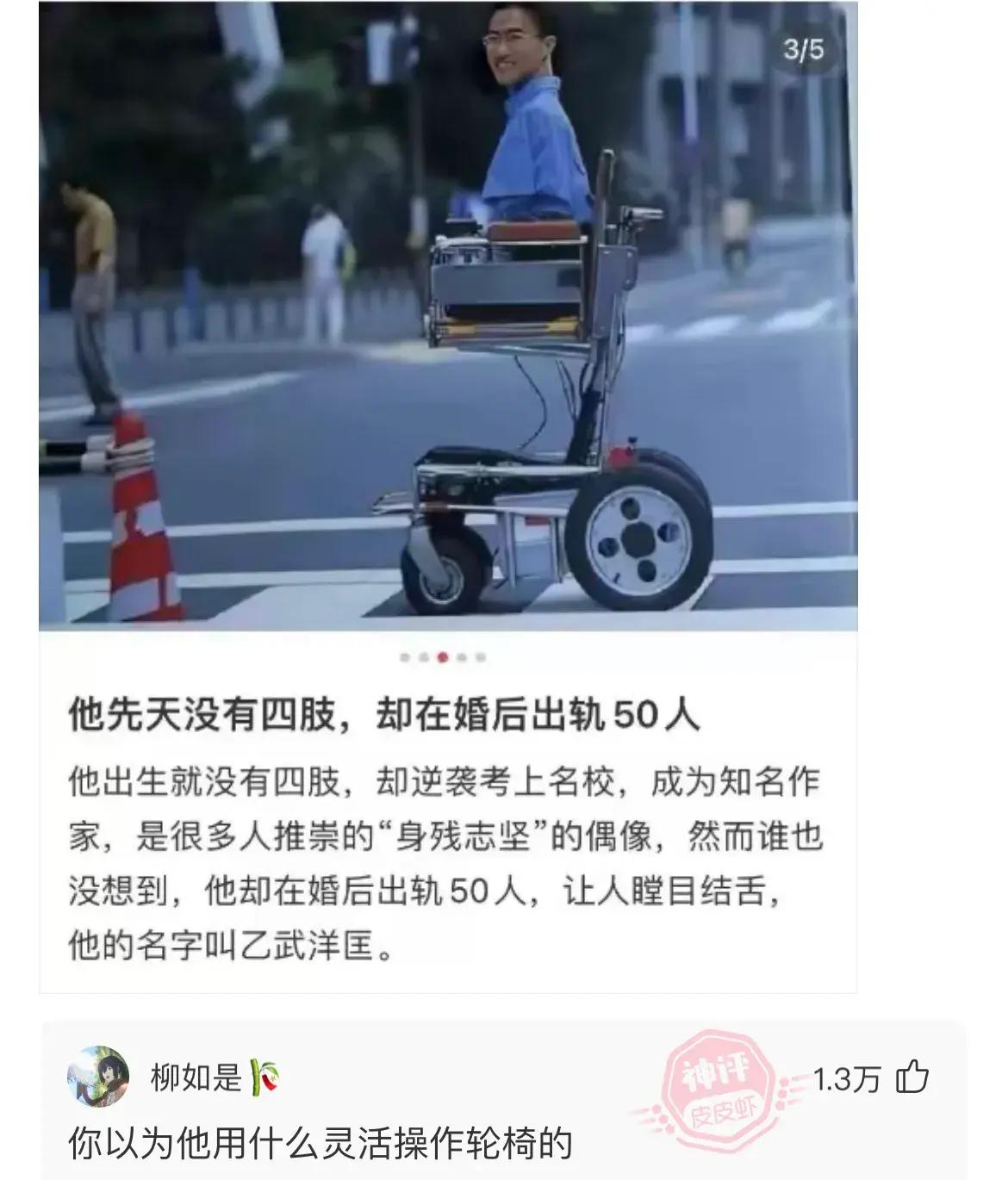爆笑神評:他先天沒有四肢,卻在婚後出軌50人