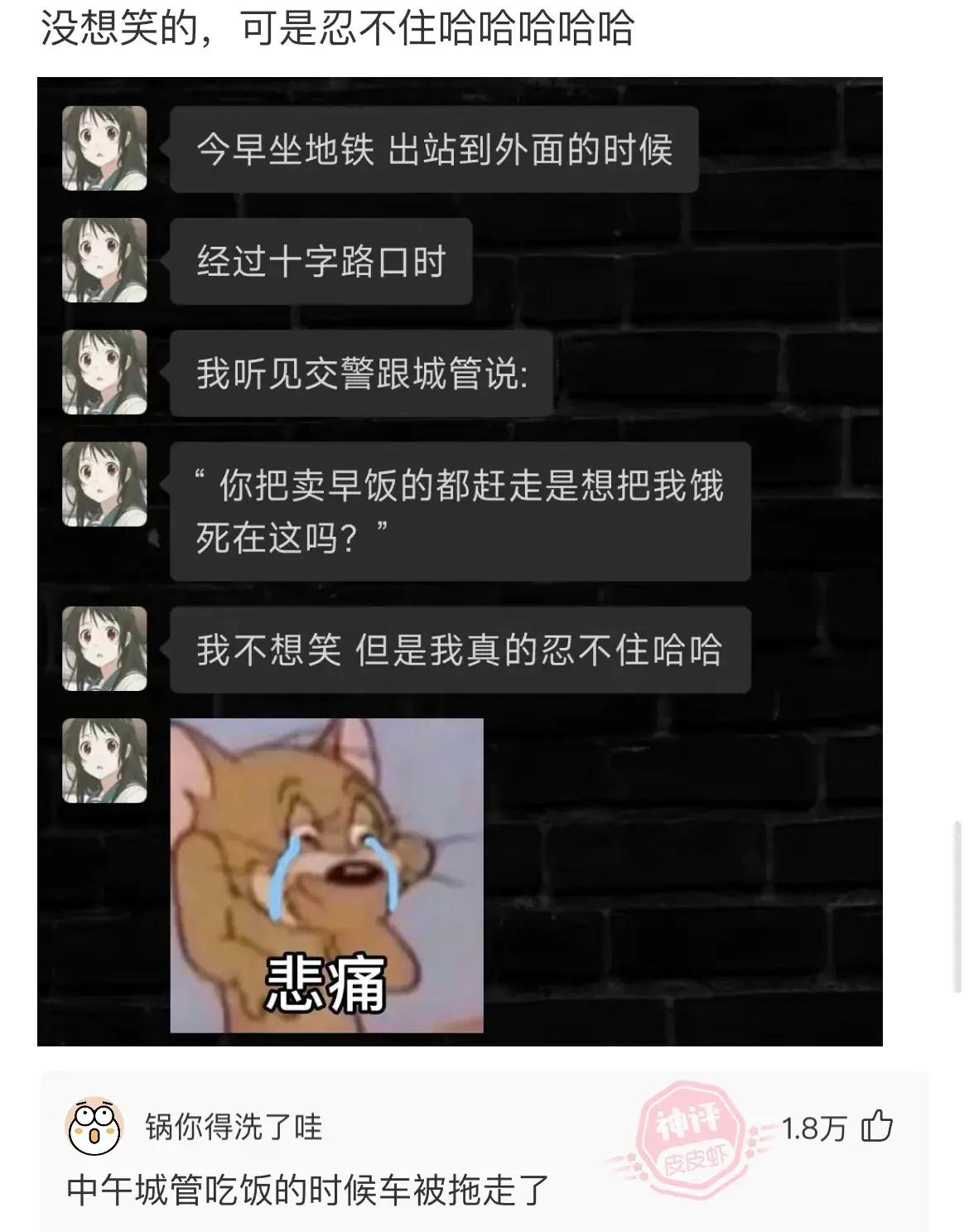 城管:我沒趕啊,我也是來買早餐的,他們看到我就跑