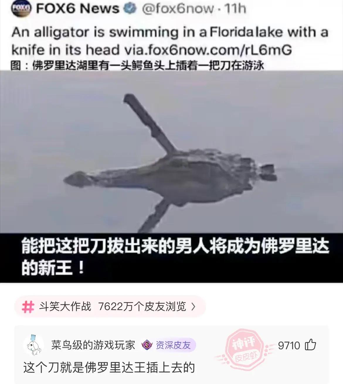 這把刀就是前任佛羅里達王插上去,爲什麼說前任呢,因爲那人在鱷魚肚子裏