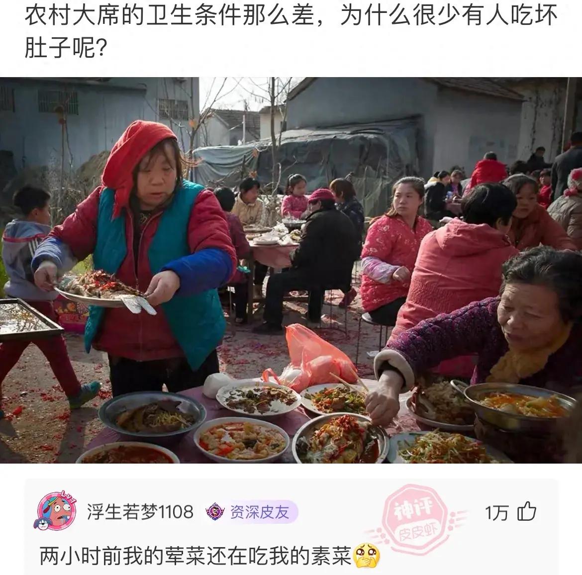 農村你但凡把在座的給喫拉了 你放心吧 方圓鄰近的幾個村你白想接事了。