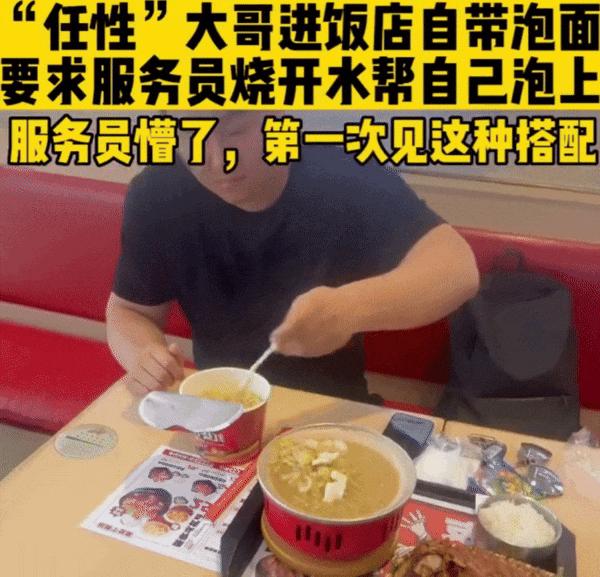 搞笑趣圖:大哥進飯店自帶泡麪,還要服務員親自泡上!