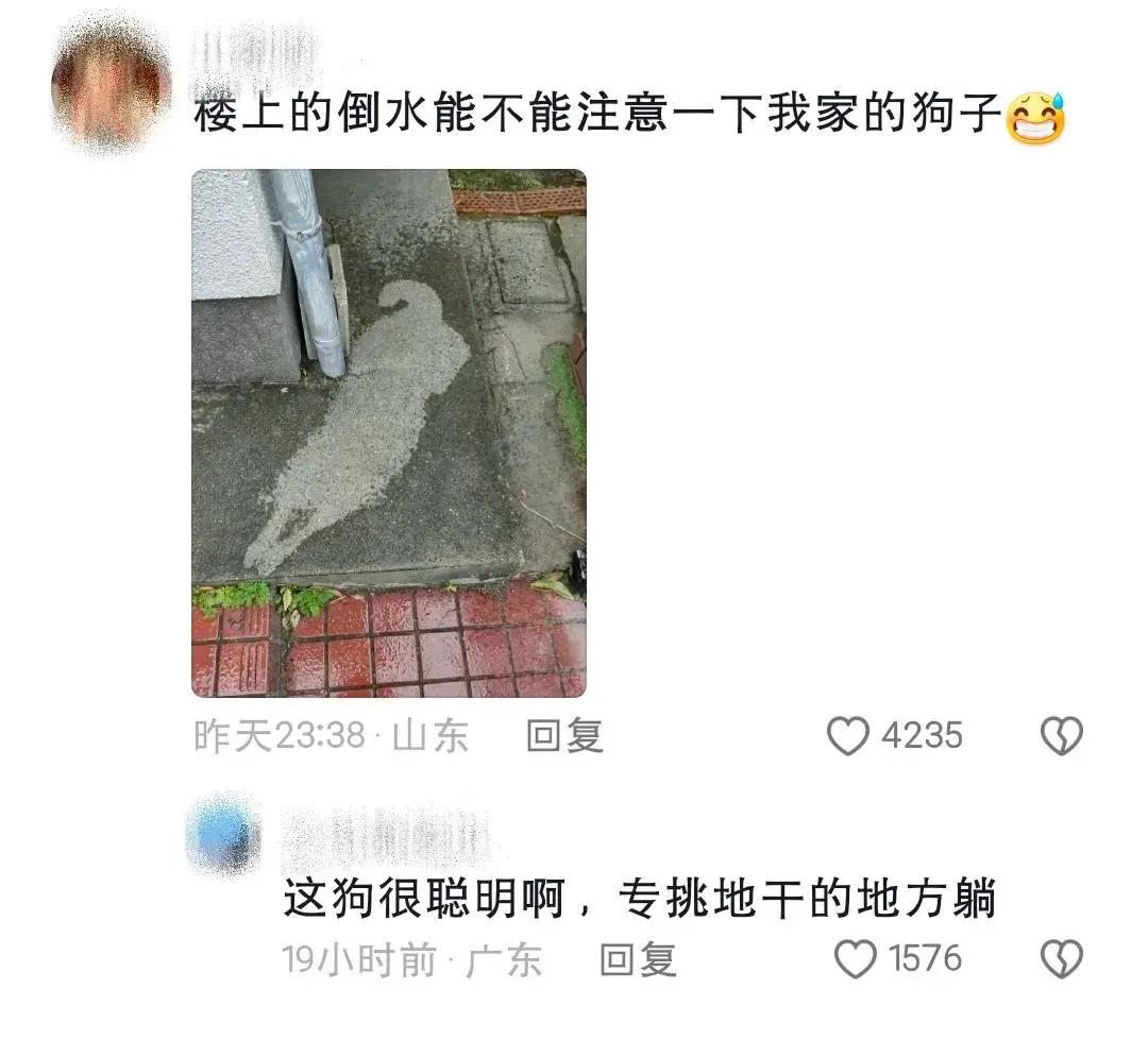 爆笑神評:樓上倒水的能不能注意一下我家狗子