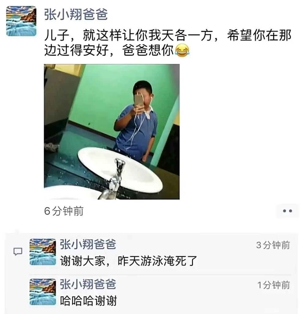 這我知道,小孩子寫的作文說父親游泳淹死了,父親發朋友圈自嘲呢。