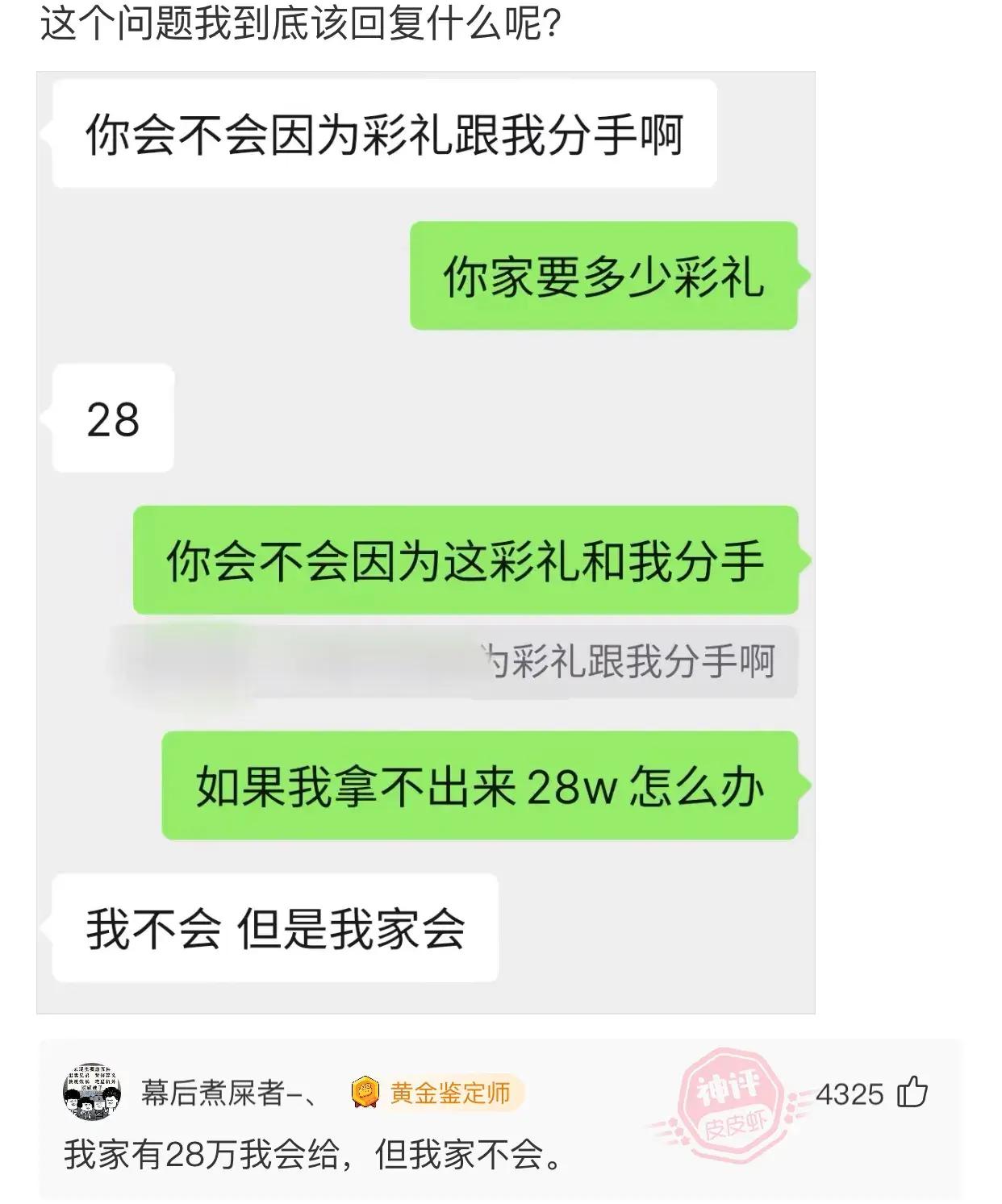 爆笑神評:女友問,你會不會因爲彩禮跟我分手