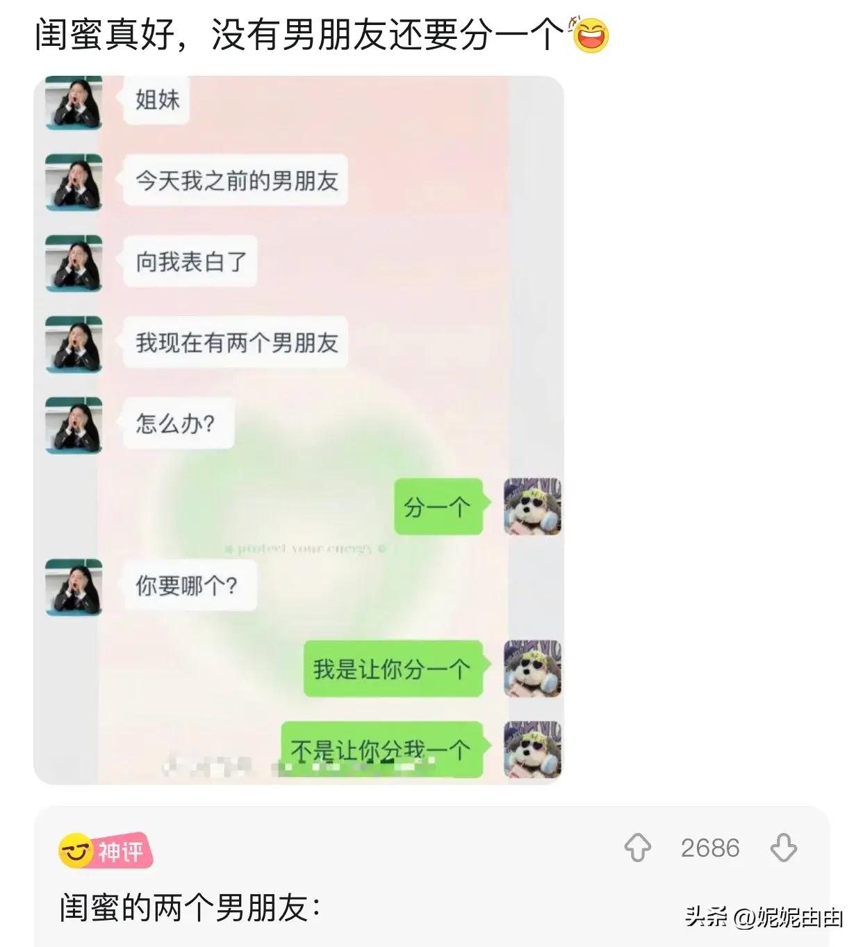爆笑神評:閨蜜真好,沒有男朋友還要分一個