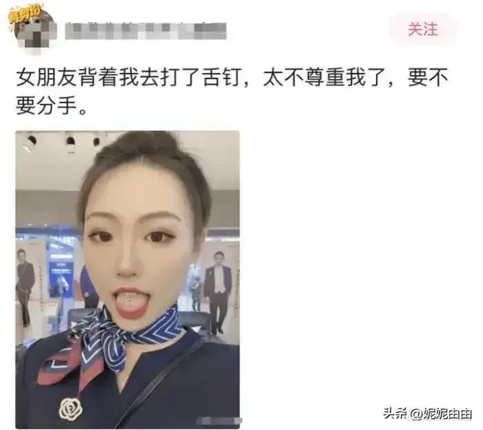 爆笑神評:女朋友揹着我去打了舌釘,太不尊重我了!