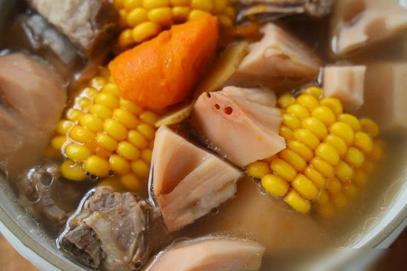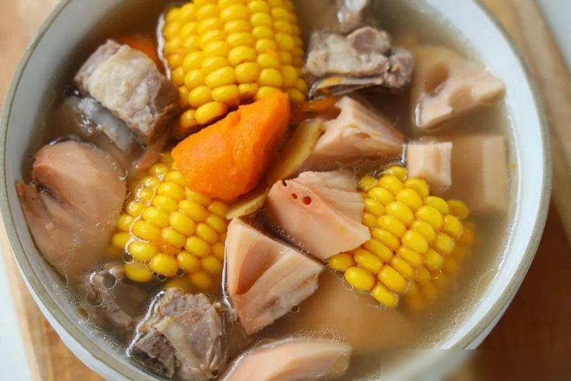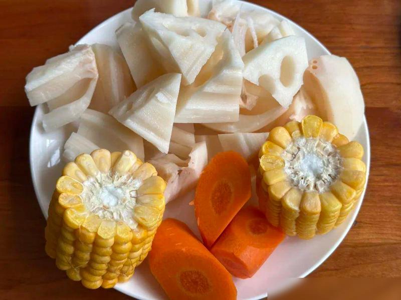 在製作之前,先將豬骨清洗乾淨,焯水去腥,再放入鍋中,加足夠的清水, 加入薑片、蔥和適量的鹽,煮沸後改小火燉煮約30分鐘至豬骨熟爛。接着,加入切好的蓮藕和玉米,繼續燉煮30分鐘,至湯汁濃郁,最後根據個人口味加入適量的鹽調味即可。