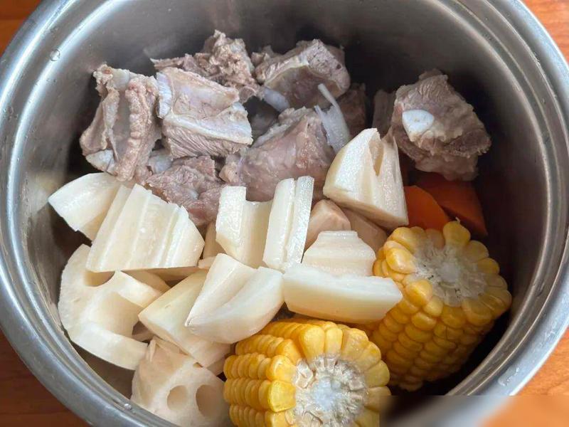 在湯品的製作過程中,食材的選取和燉煮方式也至關重要。首先, 選擇新鮮的排骨、蓮藕和玉米,確保其質量和鮮度,然後將食材放入鍋中,加入適量的水,慢慢燉煮,讓食材的精華充分釋放出來,湯汁濃郁鮮美,口感豐富。