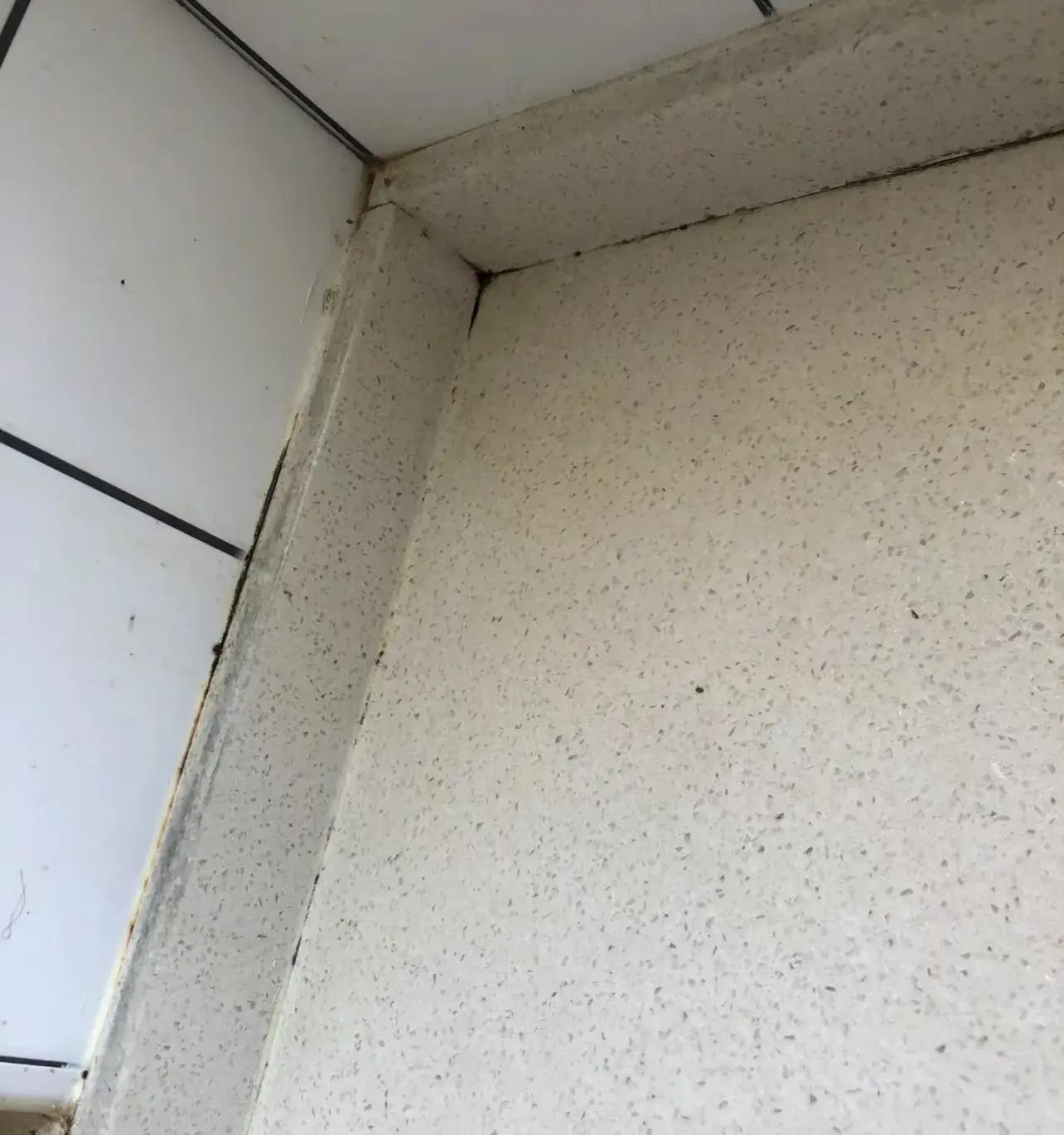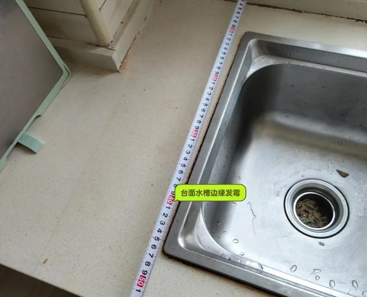 石英石臺面,優質的不會滲色,但擋水條發黴發黑;
