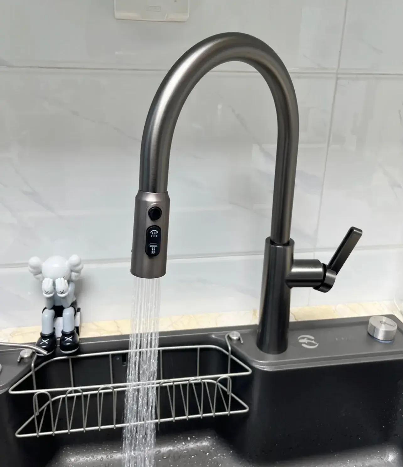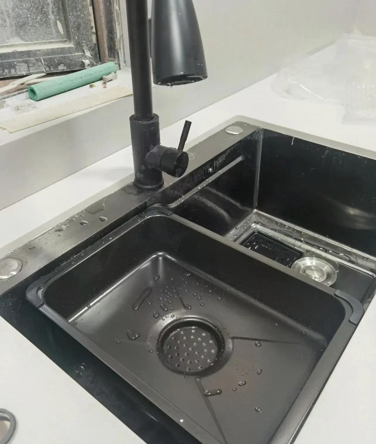 水龍頭,黑色會顯水垢、天天清理,很麻煩。
