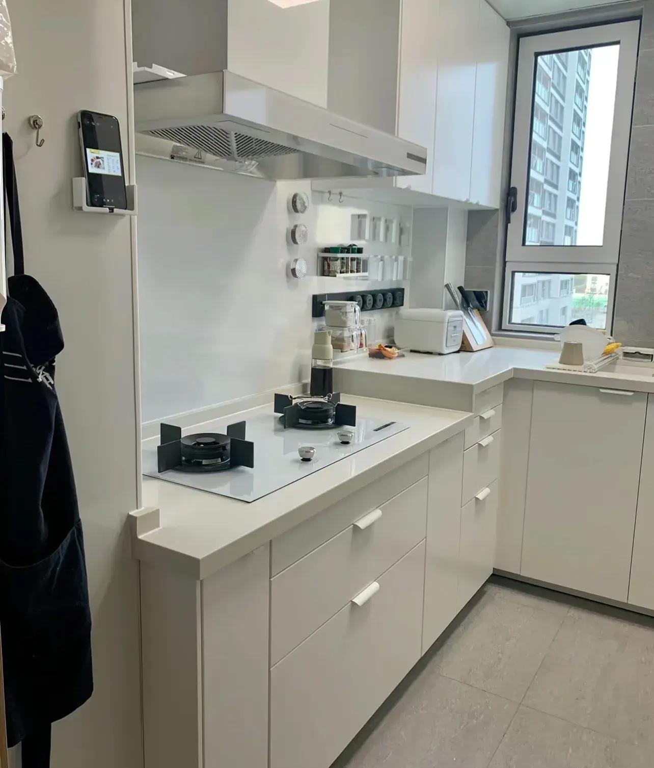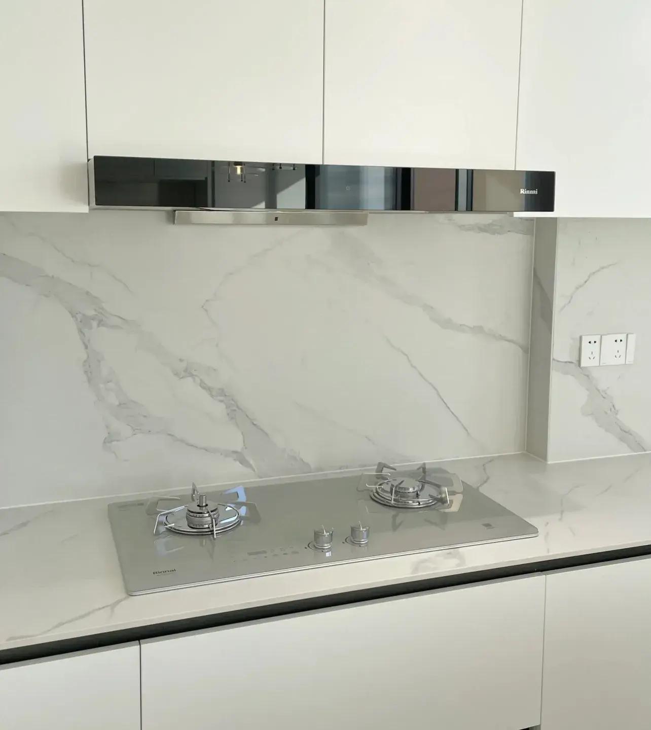 若顏值不符合要求,那就大板瓷磚或者巖板,直接讓竈臺後面的牆面形成一個整體。