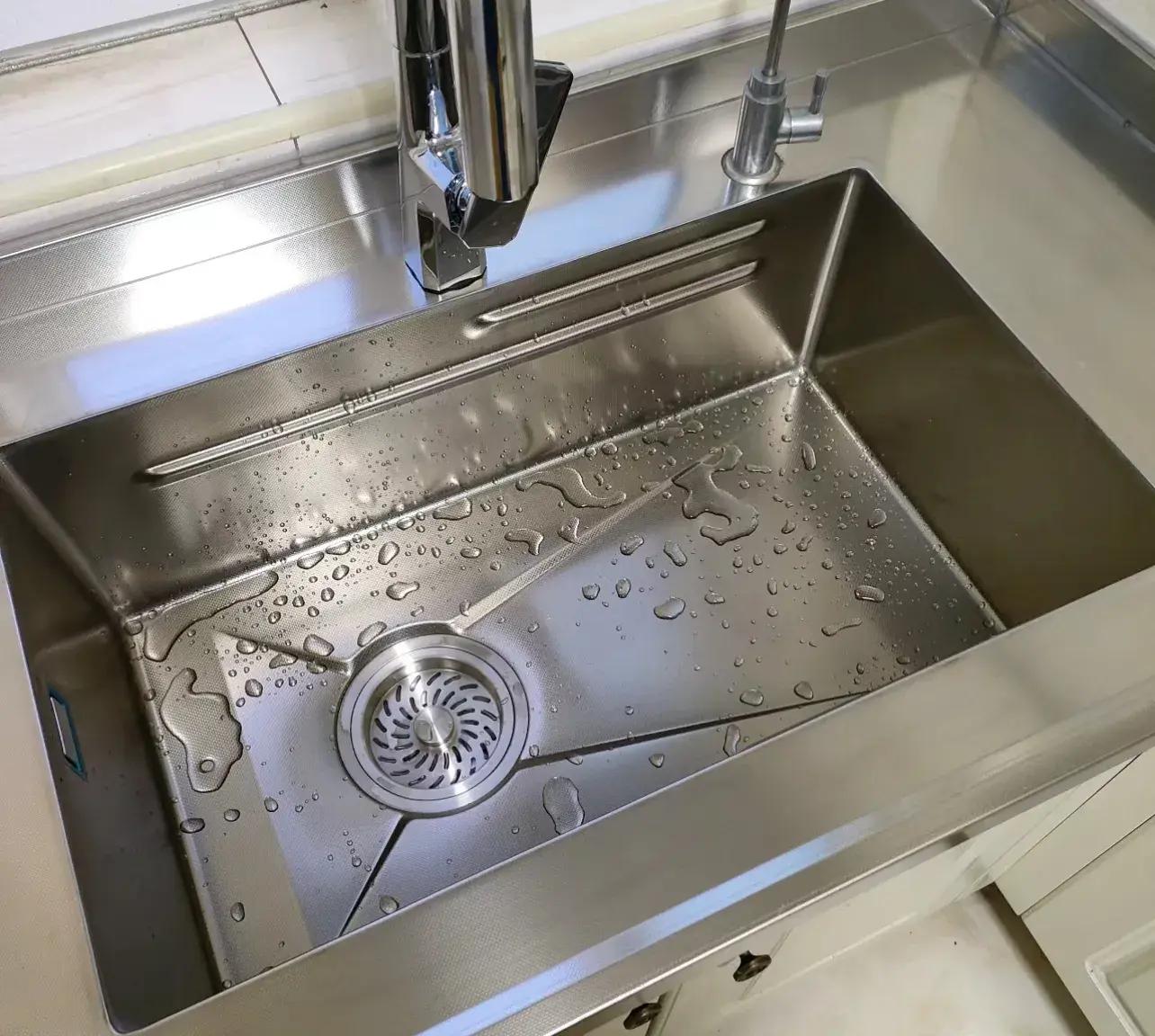 直接選包覆式的不鏽鋼,水槽跟檯面做成一體式的,一點衛生死角都沒有。