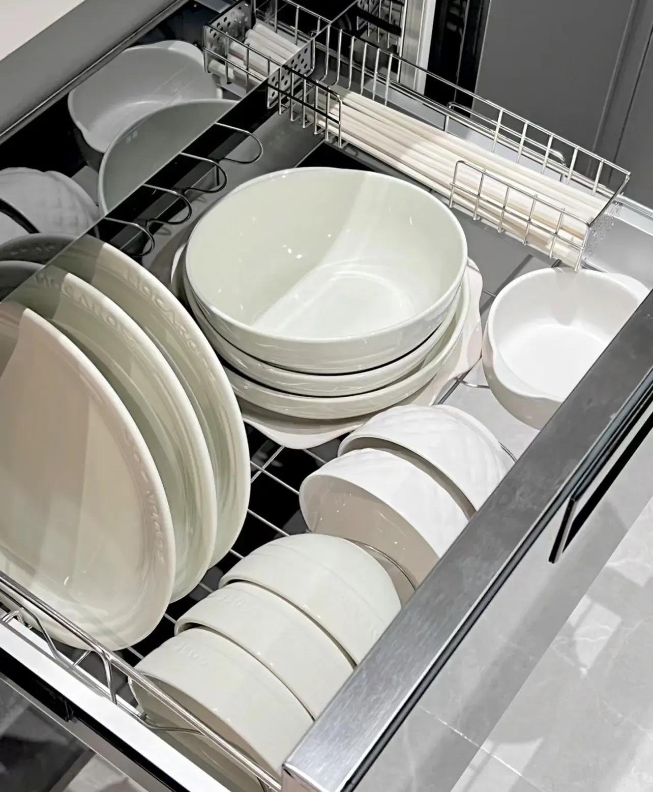 可如果設置瀝水區,給水槽邊上設置一個瀝水架,那洗碗結束,直接把碗放在瀝水架上即可,下一頓用碗筷也方便,相對而言,要省事很多。