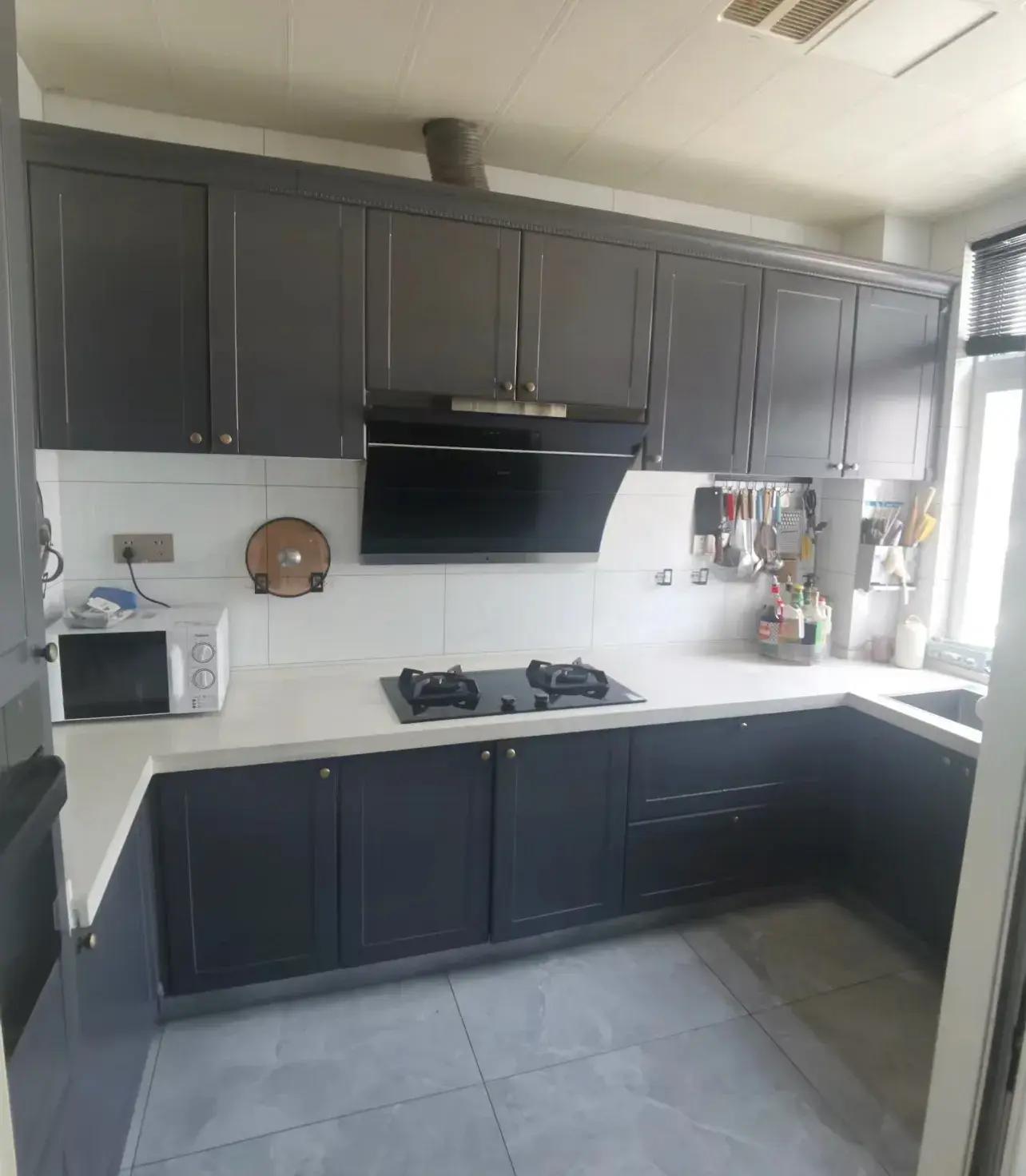 但想要提升顏值,也不是不行們還有實心不鏽鋼檯面可以選,很高大上,而且這東西能用幾代人都不是問題,就是錢包它不太允許,上次我去店裏問,10mm的,一延米是9000塊(含櫃子)……