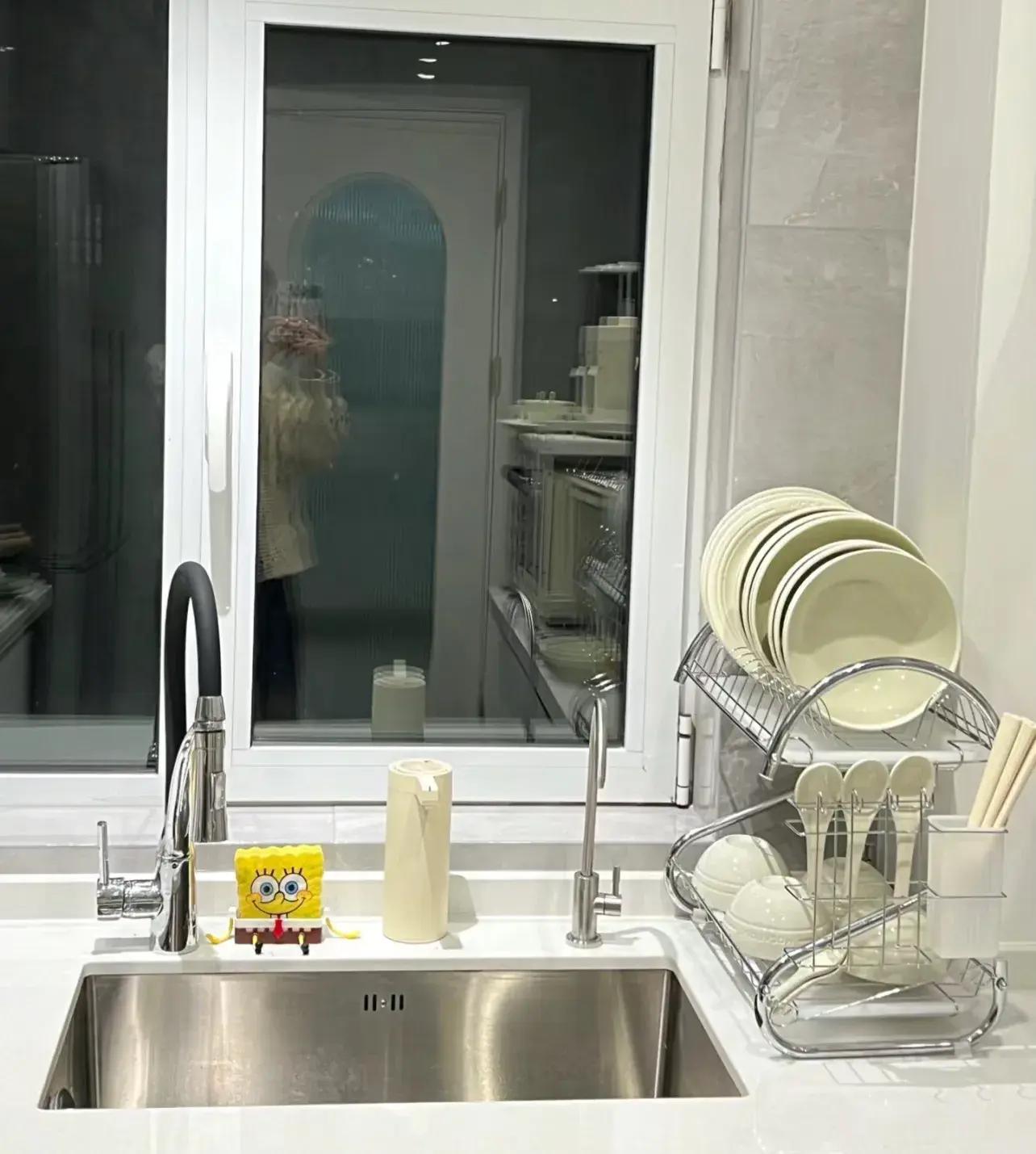 坦誠的講,有了瀝水架,的確會破壞“檯面空無一物”之美。但生活不是畫報,對於過日子的家庭來講,一個瀝水架的“亂”,還是可以接受的。