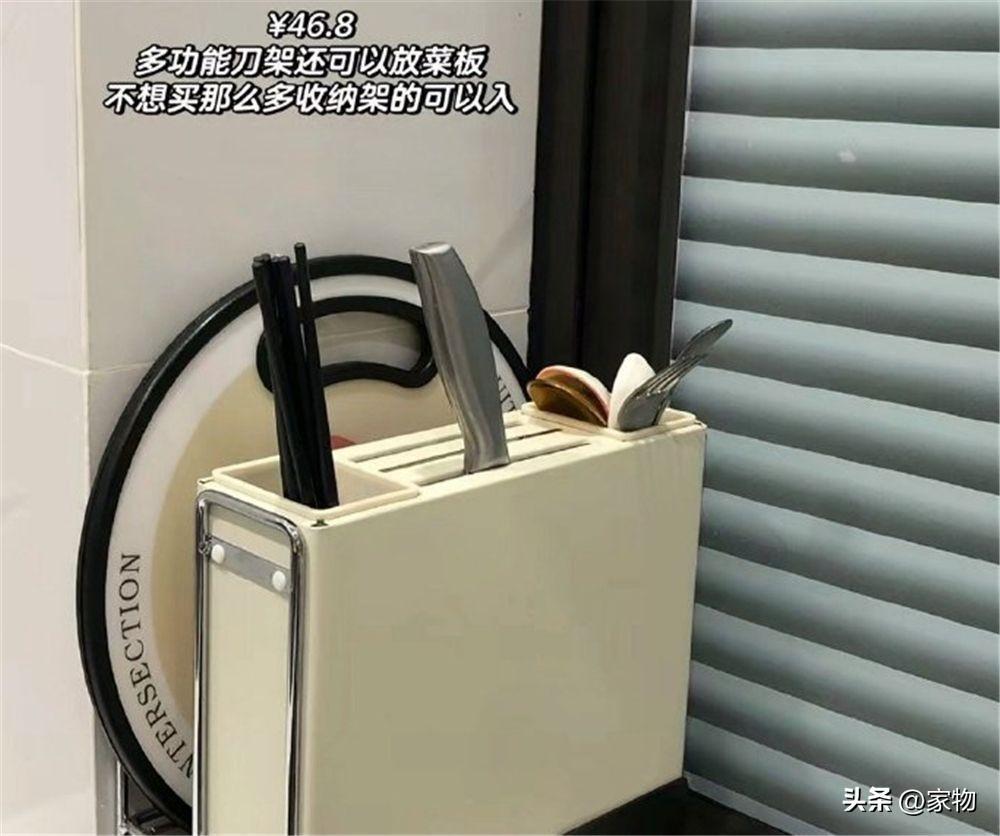 一開始我以爲廚房的這種多功能收納用品就是個噱頭,但實際上,它真的解決了廚房大半的收納問題,不僅可以放菜板,也可以放刀具、勺筷,從我的角度來看,確實將廚房變得整潔了許多。
