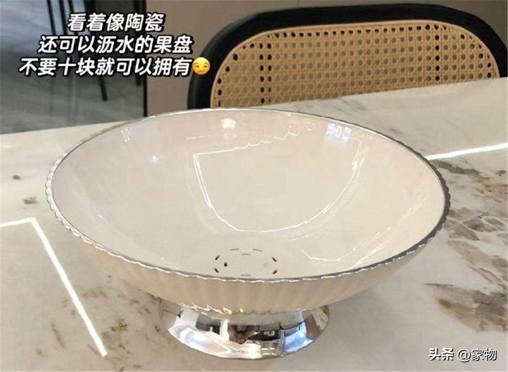 清洗水果蔬菜或者是給麪條瀝水時,我會用這種陶瓷瀝水盤,實話說,它單純擺在桌子上都很好看,但用來瀝水的時候,大碗沿會很方便瀝水,直接丟進去就可以。