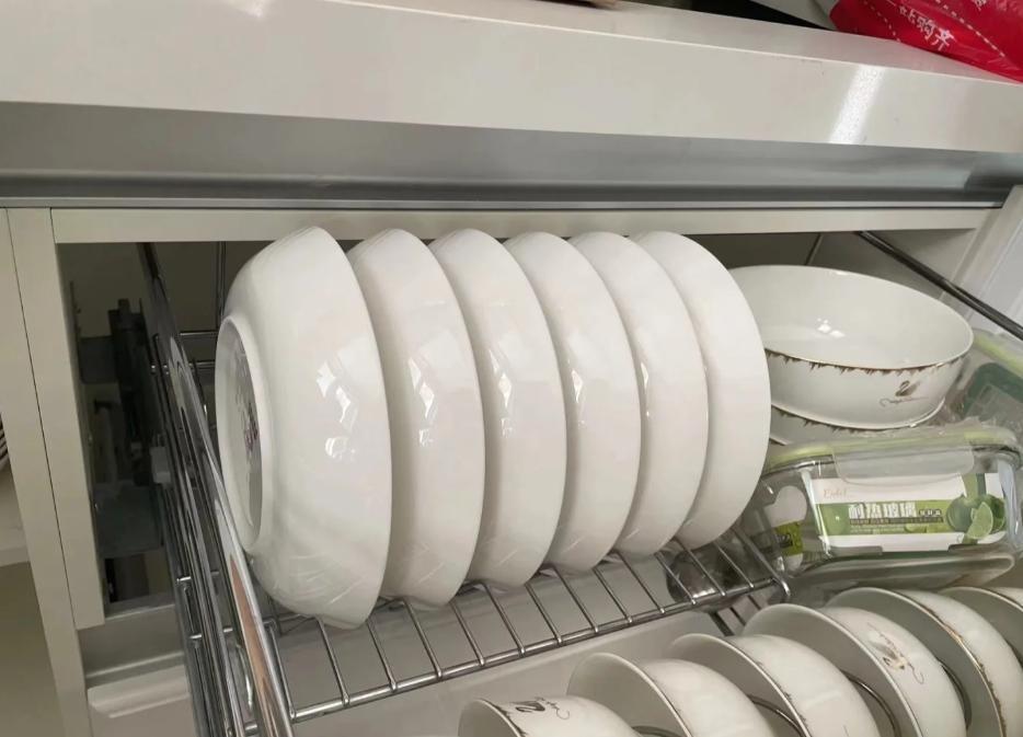 我們都知道,當碗筷刷完之後,一般還是殘留水分的。但是刷完之後又不得不直接擺放在拉籃裏。水漬多直至滴到櫥櫃裏,櫥櫃的櫃門一關,時間一長不僅容易滋生細菌而且非常難清潔。