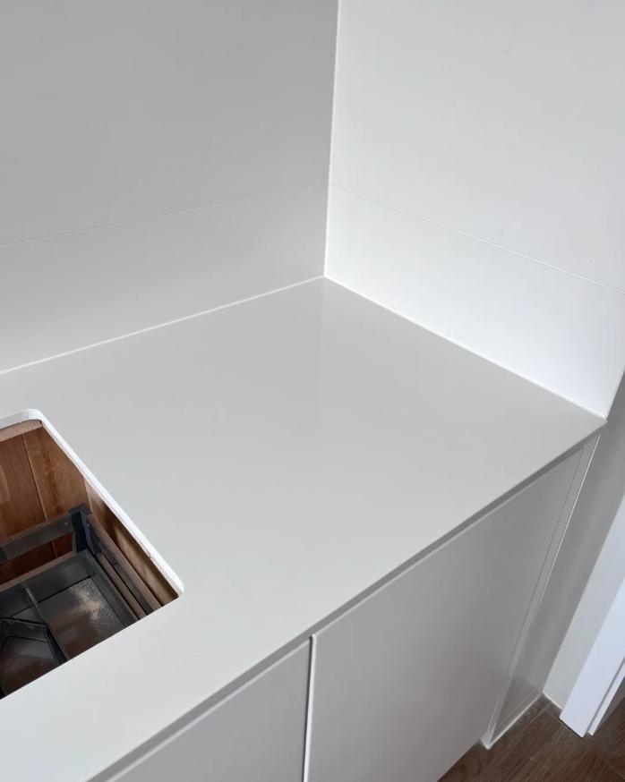①入住後臺面會擺放各種廚房用品,包括各種鍋具和小家電等等,檯面多少會有一些“沉降”或者是輕微的“位移”。這個時候裂縫自然就凸顯出來了。